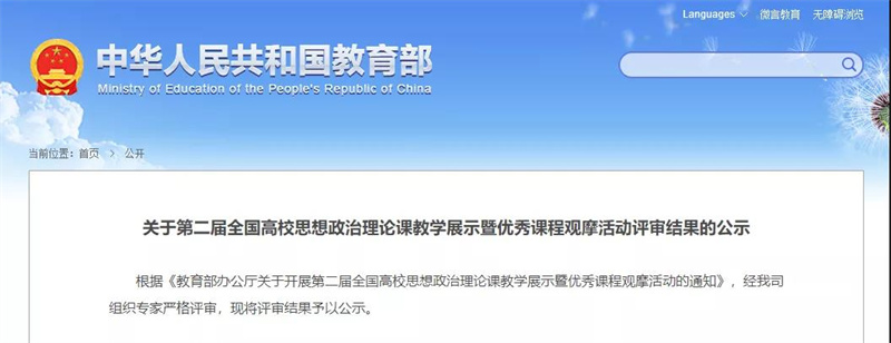 第二届全国高校思想政治理论课教学展示暨优秀课程观摩活动评审结果