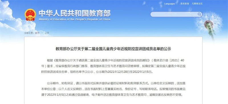 12月28日,教育部公示第二届全国儿童青少年近视防控宣讲团成员名单,经省级教育行政部门推荐、教育部体育卫生与艺术教育司资格审核,拟确定专家宣讲团成员99人,教育部门负责人宣讲团成员46人,校长和园长宣讲团成员38人,家长宣讲团成员33人,其中,宁夏5名专家拟入选专家宣讲团成员名单。