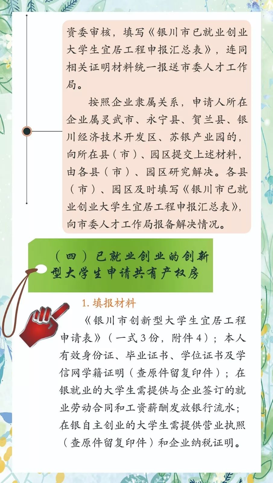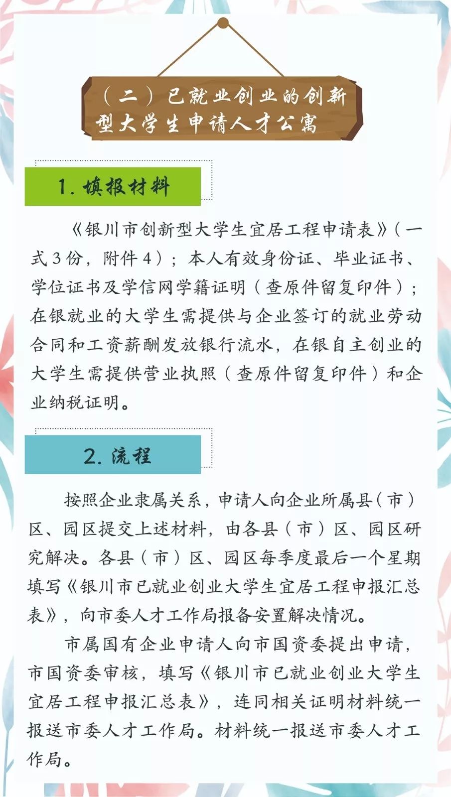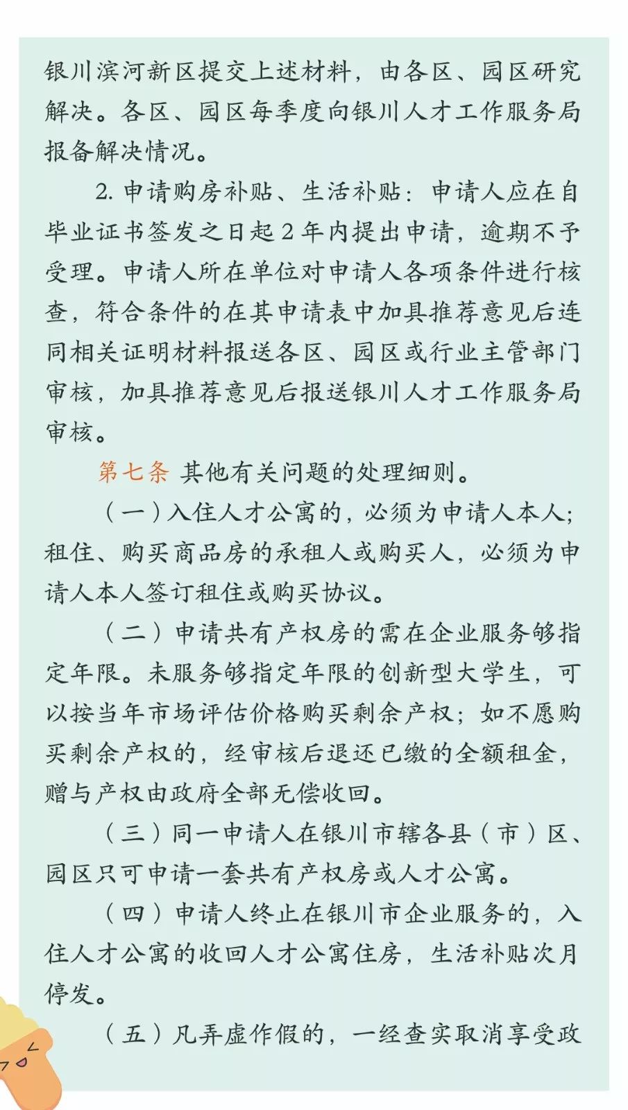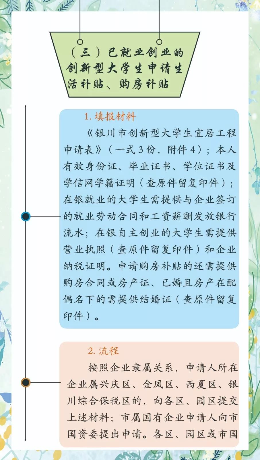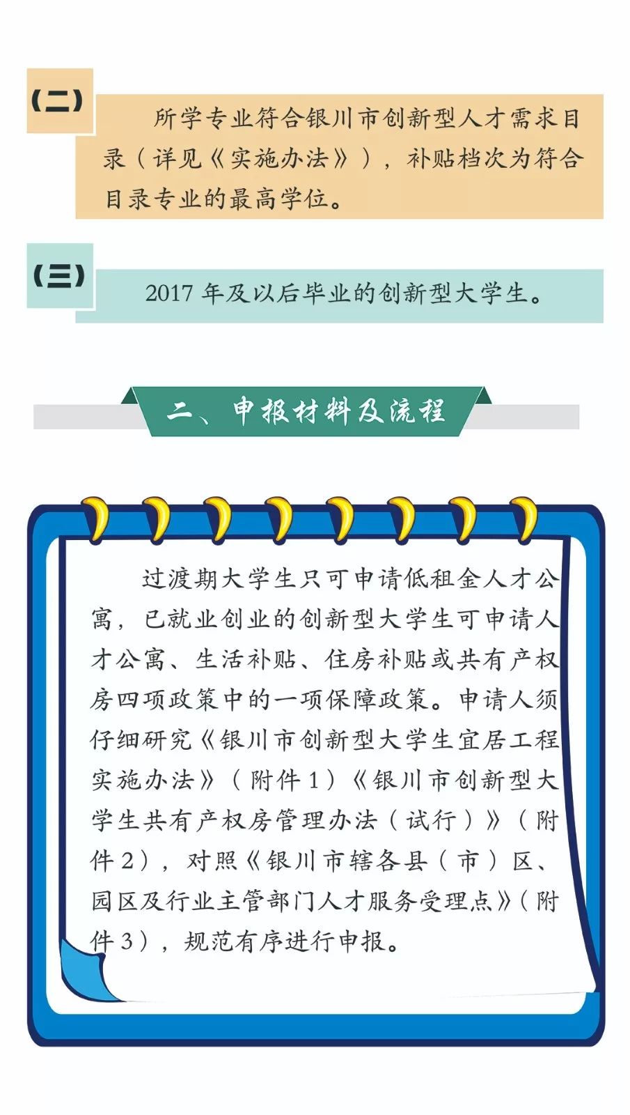 为吸引更多符合银川市重点产业发展需求的高校毕业生来银就业创业,银川市近年来相继配套出台了《银川市创新型大学生宜居工程实施办法》《银川市创新型大学生共有产权房管理办法(试行)》等政策,通过共有产权房、人才公寓、购房补贴、租房补贴4种方式,按照博士、硕士、学士3个层次,“双一流”“非双一流”2个类别,共6个档次,对已在企业就业或自主创业的全日制应届普通高校毕业生最高提供每年2.4万元的生活补贴、12万元的购房补贴、90平方米的人才公寓或共有产权房“四选一”的住房保障措施,解决创新型大学生在银安居安家问题。