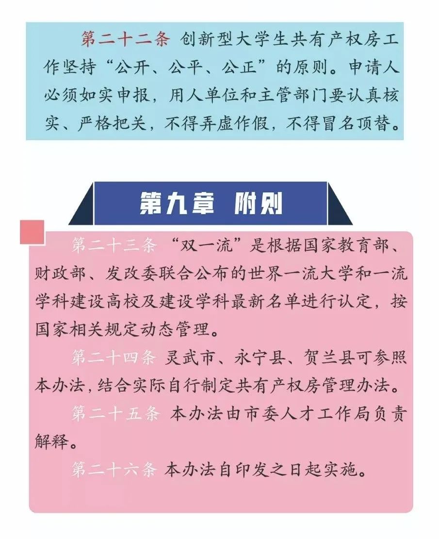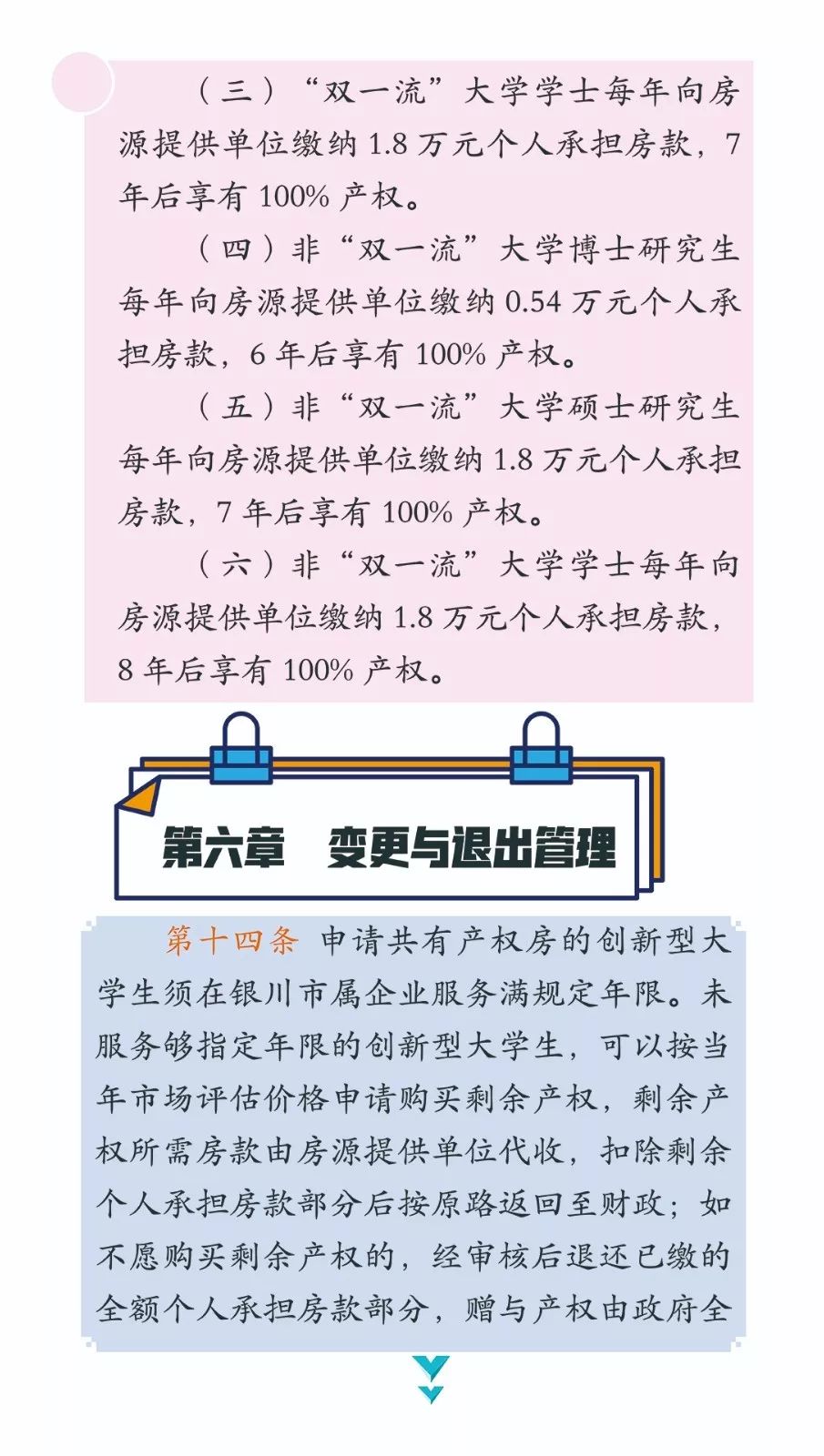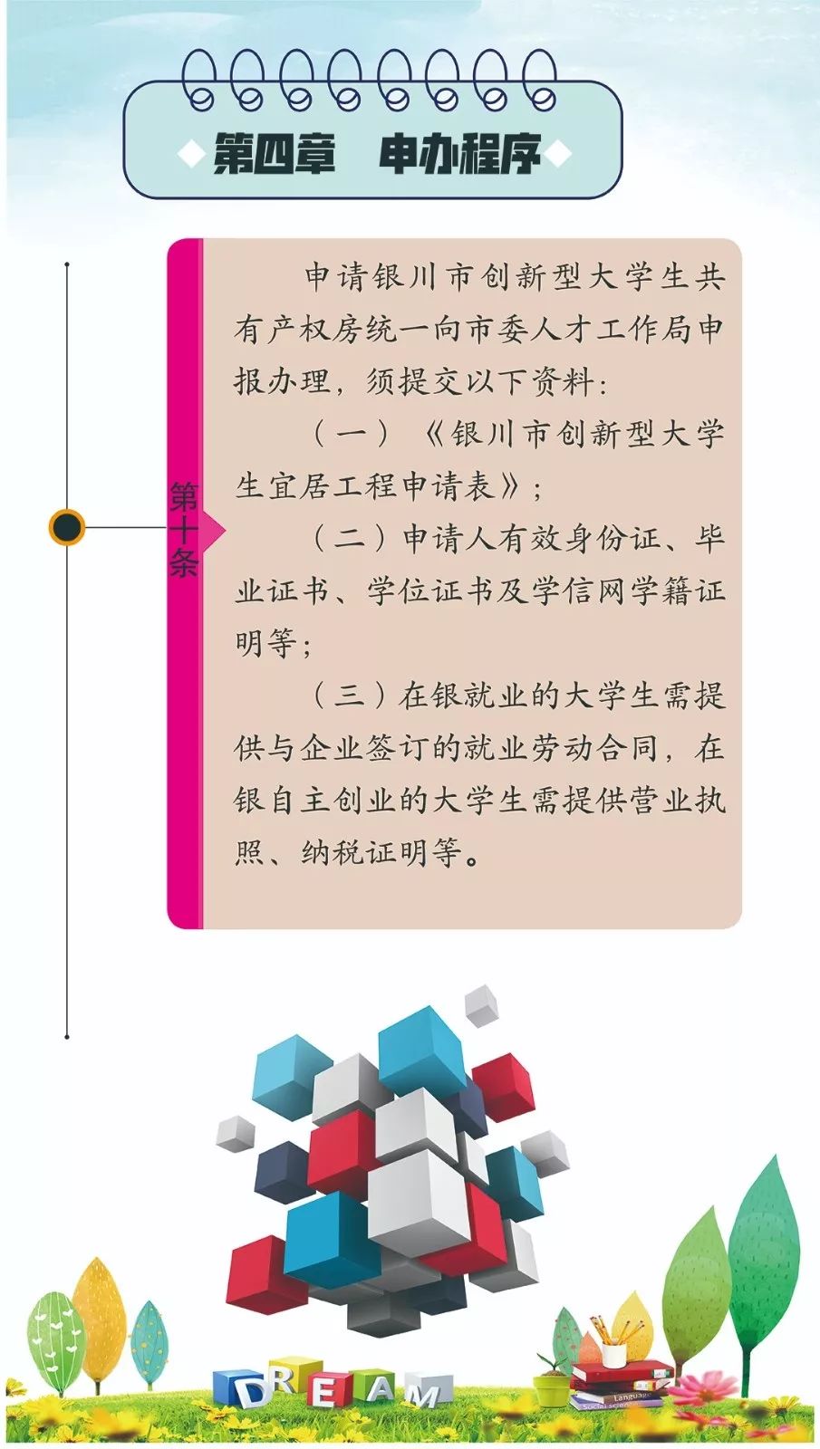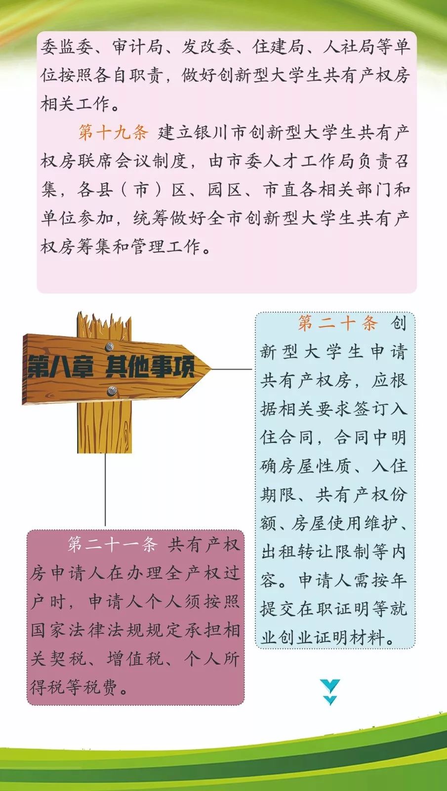 为吸引更多符合银川市重点产业发展需求的高校毕业生来银就业创业,银川市近年来相继配套出台了《银川市创新型大学生宜居工程实施办法》《银川市创新型大学生共有产权房管理办法(试行)》等政策,通过共有产权房、人才公寓、购房补贴、租房补贴4种方式,按照博士、硕士、学士3个层次,“双一流”“非双一流”2个类别,共6个档次,对已在企业就业或自主创业的全日制应届普通高校毕业生最高提供每年2.4万元的生活补贴、12万元的购房补贴、90平方米的人才公寓或共有产权房“四选一”的住房保障措施,解决创新型大学生在银安居安家问题。