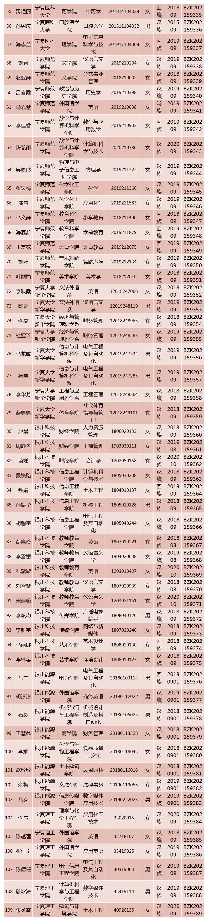 近日,教育部印发《关于2020—2021学年度本专科生国家奖学金获奖学生名单的公告》,对2020—2021学年度本专科生国家奖学金获奖者名单进行公布,宁夏共有337名优秀学生获此殊荣。希望大家以获奖学生为榜样,勤奋学习、积极进取,争做德智体美劳全面发展的社会主义建设者和接班人。